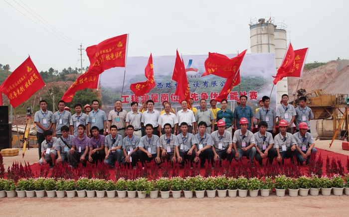 9月2日,廣西路橋建設(shè)有限公司在六欽1標(biāo)舉辦工程測(cè)量崗位創(chuàng)先爭優(yōu)技能比賽。廣西交通工會(huì)、海員工會(huì)主席黎建華,自治區(qū)交通運(yùn)輸廳直屬機(jī)關(guān)黨委專職副書記羅華芝,集團(tuán),公司黨委副書記張友坐等領(lǐng)導(dǎo)出席比賽開幕儀式并講話。
