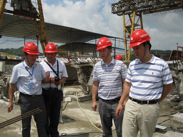 圖2:集團(tuán)公司覃炳賢總工程師(左二)在項(xiàng)目檢查指導(dǎo)