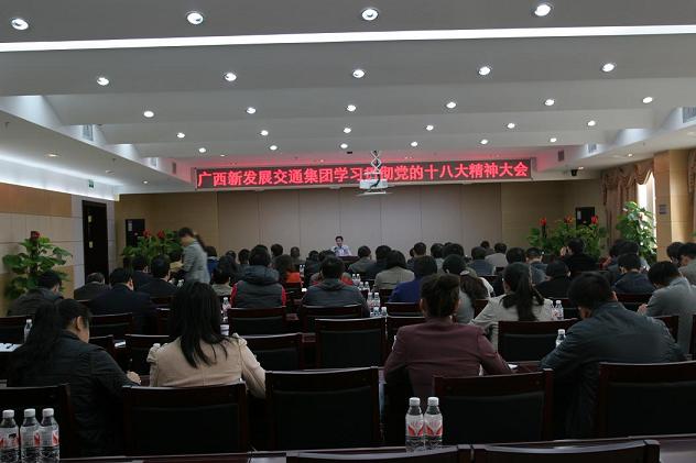 為深入學(xué)習(xí)貫徹落實(shí)黨的十八大會議精神,在組織廣大黨員干部職工參加支部集中學(xué)習(xí)、科室集中學(xué)習(xí)、業(yè)余自學(xué)的基礎(chǔ)上,12月6日上午,廣西新發(fā)展交通集團(tuán)黨委在南寧召開了集中學(xué)習(xí)貫徹黨的十八大精神專題輔導(dǎo)大會,集中聽取了中國社會科學(xué)院黨組成員、副院長兼當(dāng)代中國研究所所長、黨組書記李捷同志關(guān)于《深入學(xué)習(xí)貫徹十八大精神》的視頻專題輔導(dǎo)講座。集團(tuán)公司領(lǐng)導(dǎo)班子成員、集團(tuán)公司機(jī)關(guān)全體人員,直屬各單位領(lǐng)導(dǎo)班子成員、黨委辦公室負(fù)責(zé)人,廣西公路橋梁工程總公司各分(子)公司黨政一把手共80余人參加了會議。講座從黨的十八大主題、科學(xué)發(fā)展觀、中國特色社會主義道路、全面建成小康社會的新論斷及關(guān)于黨的建設(shè)要求的總體布局等五個方面進(jìn)行了深入解答,讓廣大黨員干部職工受益匪淺。