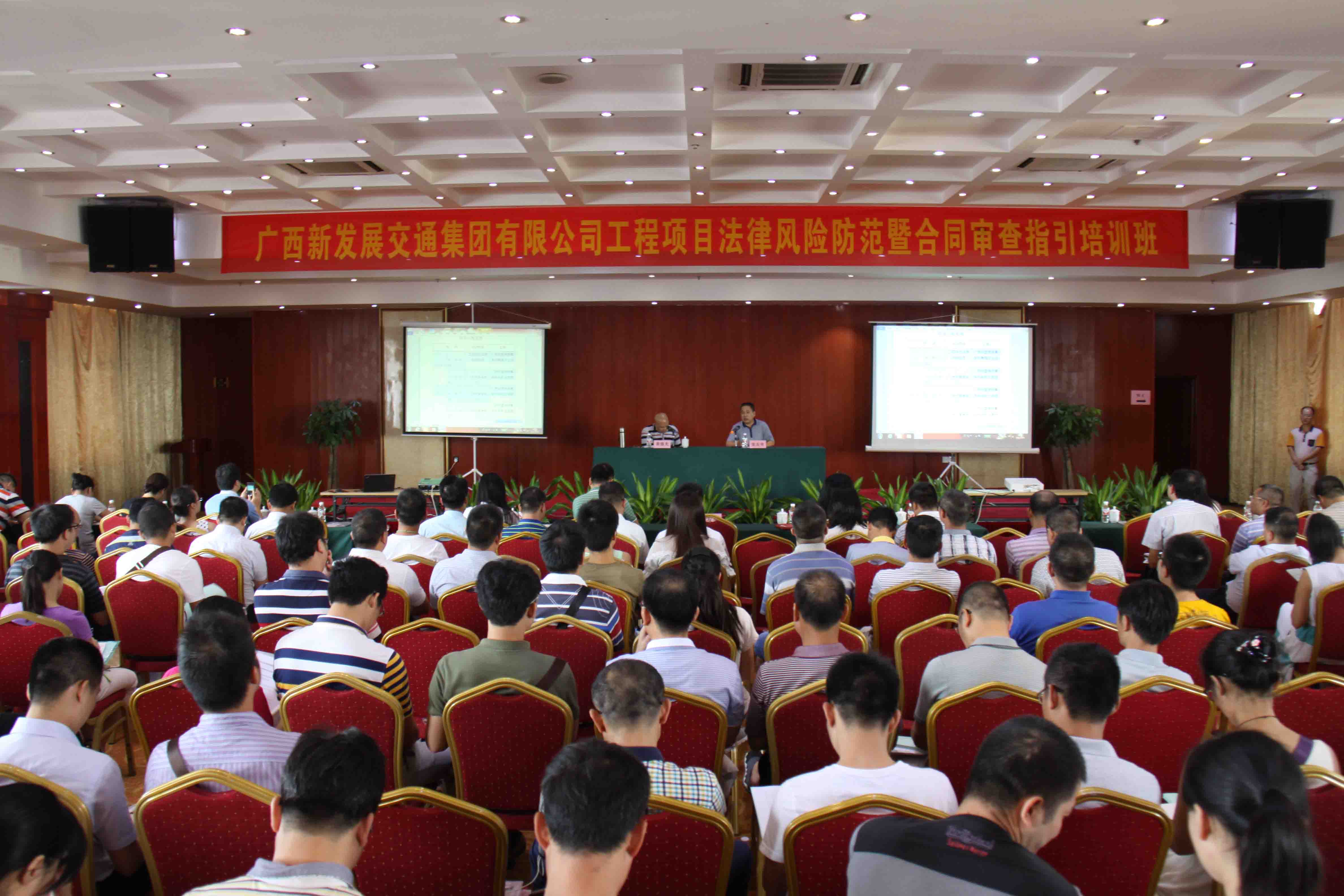 本次培訓(xùn)班邀請了廣西同望律師事務(wù)所黃強光主任和林籽光律師分別就工程項目法律風(fēng)險防范及集團公司《合同審查指引》進行專題講解。
