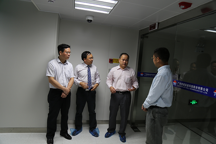 簽約儀式結(jié)束后,與會的各位領(lǐng)導(dǎo)共同參觀了我集團公司控股企業(yè)——廣西捷通公司ETC中心機房,并聽取了技術(shù)人員對中心系統(tǒng)建設(shè)情況、設(shè)備安裝使用情況、機房運轉(zhuǎn)流程、技術(shù)支持、監(jiān)控及操作、消防通道等情況的匯報。