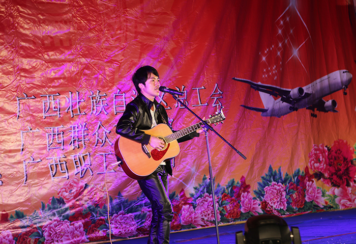 當(dāng)晚,一曲《唱著山歌等你來(lái)》拉開了演出序幕……優(yōu)美的舞蹈、詼諧幽默的小品、變化莫測(cè)的魔術(shù)、精彩絕倫的雜技等節(jié)目,多種表演形式藝術(shù)地展現(xiàn)了廣大職工誠(chéng)實(shí)勞動(dòng)、勤奮勞動(dòng)、創(chuàng)新勞動(dòng)的時(shí)代風(fēng)采,奏響了“勞動(dòng)美”時(shí)代主旋律。工地小伙也走上舞臺(tái),吉他彈唱《曾經(jīng)的你》展現(xiàn)了廣西新發(fā)展人樂于奉獻(xiàn)、克難攻堅(jiān)的時(shí)代風(fēng)采。整場(chǎng)慰問(wèn)演出歷時(shí)80分鐘,贏得現(xiàn)場(chǎng)觀眾的陣陣掌聲、歡呼聲和喝彩聲,一次又一次把氣氛推向高潮。