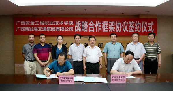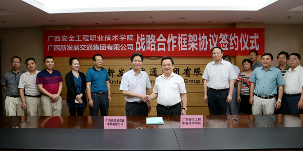 黎志逘祝賀雙方正式建立戰(zhàn)略合作伙伴關(guān)系。他說,廣西安全工程職業(yè)技術(shù)學(xué)院是經(jīng)廣西壯族自治區(qū)人民政府批準(zhǔn)成立、教育部備案的公辦全日制普通高等職業(yè)學(xué)院,隸屬廣西壯族自治區(qū)安全生產(chǎn)監(jiān)督管理局管理,是廣西唯一一所、全國第三所專門培養(yǎng)安全類高等專業(yè)技術(shù)人才的現(xiàn)代化職業(yè)學(xué)院。為了深入貫徹黨的十八屆六中全會和習(xí)近平總書記、李克強(qiáng)總理關(guān)于安全生產(chǎn)工作的重要指示批示精神,推動企業(yè)落實安全生產(chǎn)主體責(zé)任,在全社會凝聚弘揚(yáng)安全發(fā)展理念、支持安全生產(chǎn)的共識,“十三五”期間乃至更長一個時期,雙方將建立互信、互補(bǔ)、互援的戰(zhàn)略合作關(guān)系,開啟校企全面深入合作的新篇章。通過深入合作交流,促進(jìn)了廣西安全工程職業(yè)技術(shù)學(xué)院發(fā)展,提升了廣西新發(fā)展交通集團(tuán)有限公司在安全生產(chǎn)方面的實力,最終實現(xiàn)雙方的共贏。