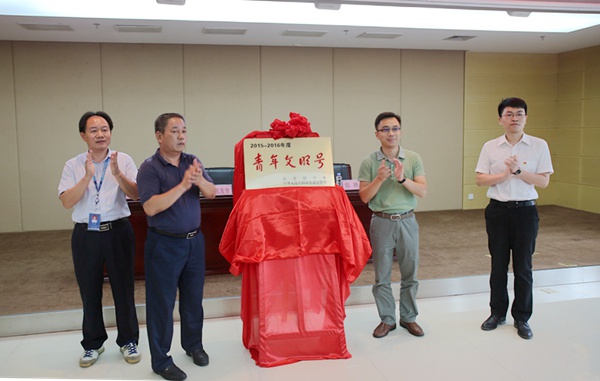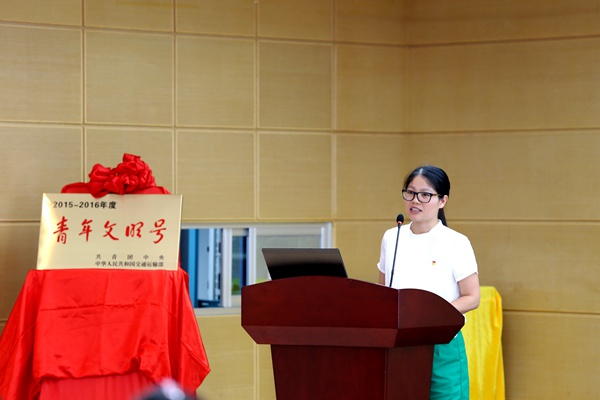 隨后,交通運(yùn)輸廳團(tuán)委阮夏恒書記宣讀共青團(tuán)中央聯(lián)合其他21個(gè)部委下文的《關(guān)于命名2015—2016年度全國(guó)“青年文明號(hào)”的決定》。宣讀完畢后,團(tuán)區(qū)委青年發(fā)展部部長(zhǎng)助理張弛、交通廳團(tuán)委書記阮夏恒、集團(tuán)公司黨委副書記張友坐、設(shè)計(jì)院公司黨委書記周錚共同為“青年文明號(hào)”揭牌。