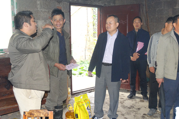 在環江縣明倫鎮,朱堅和董事長、張友坐副書記一行先后到集團公司駐村“第一書記”工作的環江縣明倫鎮豹山村、相堯村、才帛村開展走訪慰問活動,與駐村“第一書記”開展座談會深入交流,實地了解脫貧攻堅各項工作開展情況,同時走訪慰問了當地困難群眾,為他們送去了慰問金和油等生活用品。