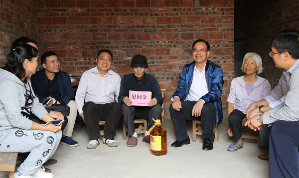 10月25日,集團公司副總經(jīng)理李德智、辦公室主任磨立堂,工程院黨總支部書記、院長謝登禹以及合山市人大常委會主任藍(lán)賓北一行到集團公司扶貧聯(lián)系來賓合山市河里鎮(zhèn)河里村開展精準(zhǔn)扶貧日走訪慰問活動。通過開展座談交流,進一步掌握河里村脫貧攻堅進展情況,并為下一步脫貧工作提出建議與對策。同時,還來到河里村韋啟助、羅耀權(quán)、曾有姣、韋遷池等貧困戶的家里,了解生產(chǎn)生活情況,并送上了慰問金和慰問品。