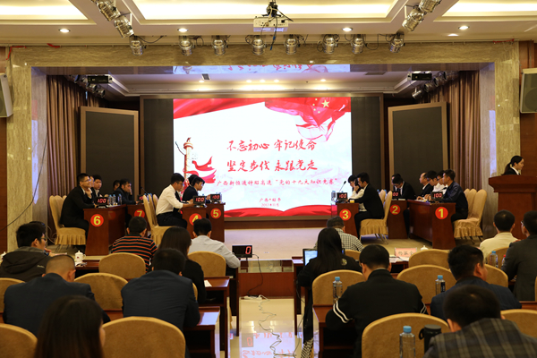 11月15日,新恒通公司賀巴高速(都安至巴馬段)建設指揮部黨支部組織開展“學習十九大,共筑中國夢”朗讀者比賽,弘揚主旋律,傳遞正能量。八位朗讀者用聲音表達了愛黨愛國的政治情懷。