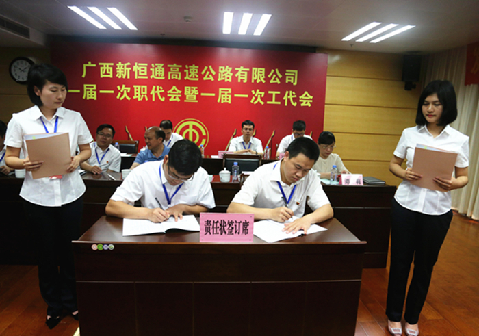 4月4日上午,新恒通公司一屆一次職代會暨一屆一次工代會勝利召開。會議全面貫徹落實(shí)黨的十九大及全國、全區(qū)交通工作會議和集團(tuán)公司2018年工作會議精神,全面總結(jié)公司成立三年來的工作,明確和部署2018年各項(xiàng)重點(diǎn)工作,共謀公司發(fā)展大計(jì),為奮力開創(chuàng)新時(shí)代“縣縣通”高速公路建設(shè)事業(yè)新局面而努力奮斗。集團(tuán)公司領(lǐng)導(dǎo)出席會議并發(fā)表講話,集團(tuán)公司派駐監(jiān)事會成員、41名正式代表、3名列席代表參加會議。公司黨委副書記、工會主席梁波主持會議。