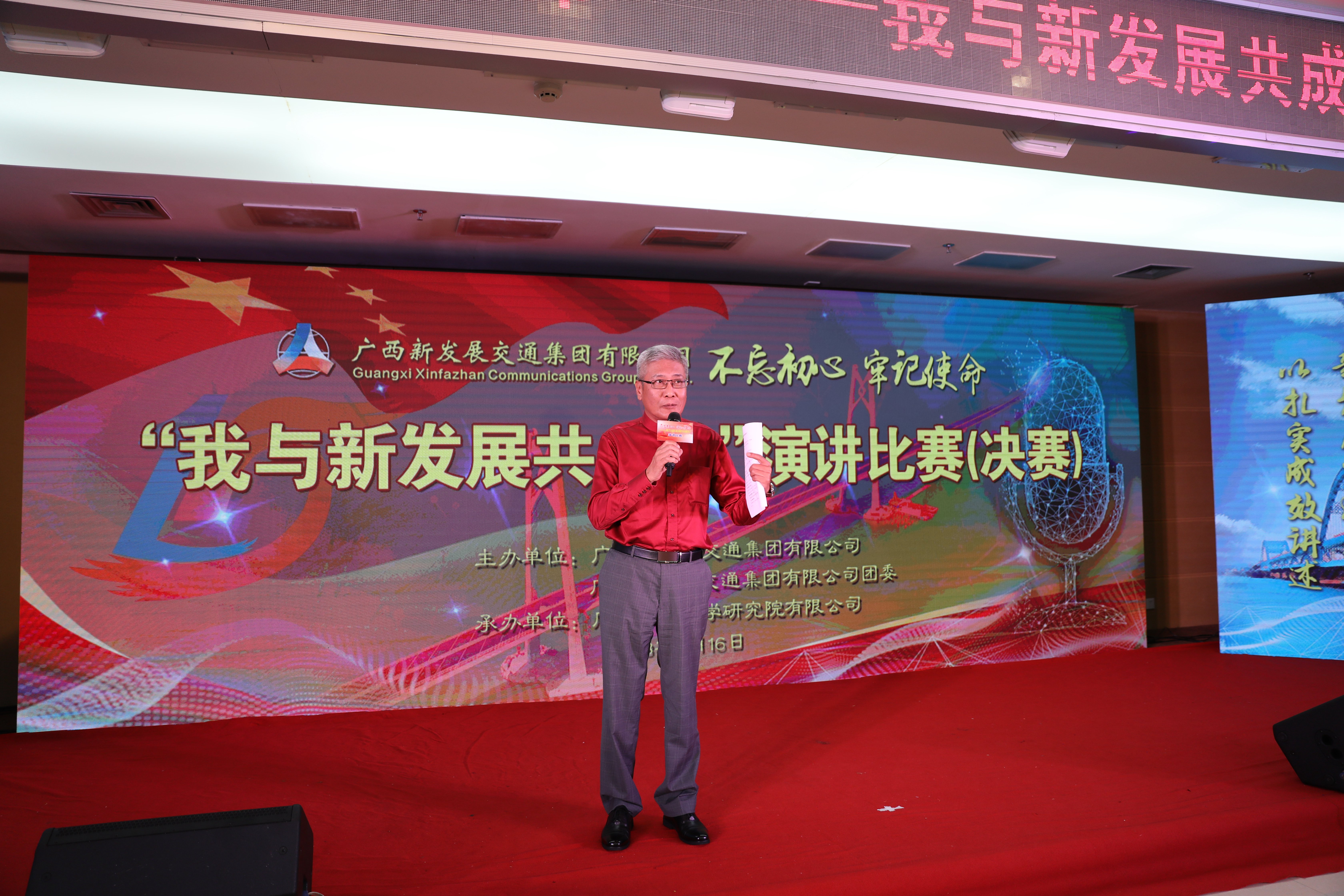 為深入學(xué)習(xí)貫徹落實(shí)習(xí)近平新時(shí)代中國(guó)特色社會(huì)主義思想和黨的十九大精神,以扎實(shí)的成效迎接改革開放40周年和自治區(qū)成立60周年,近日,廣西新發(fā)展交通集團(tuán)舉辦“不忘初心、牢記使命——我與新發(fā)展共成長(zhǎng)”主題演講比賽。8月16日,決賽在南寧成功舉辦。